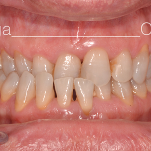 ESTÉTICA: tiene los dientes anteriores desnivelados, con cambios de coloración y el borde incisal del 2.1 fracturado.